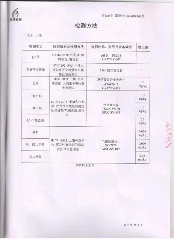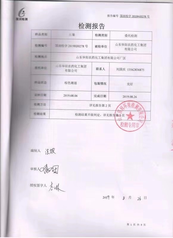 山東華陽農(nóng)藥化工集團(tuán)有限公司土壤環(huán)境檢測報(bào)告